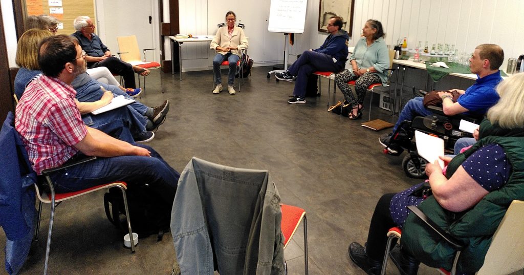 Am 31. Mai nahmen elf Engagierte aus den Selbsthilfe- und Patientenorganisationen in NRW an der Fortbildung “Lampenfieber in der Gremienarbeit wirksam überwinden” teil, die von der Koordinierungsstelle organisiert wurde. Die Referentin, Cornelia Harloff, vermittelte Methoden, mit denen sich der Stress bei öffentlichen Auftritten reduzieren und die Präsentationsangst abbauen lassen. Aufgrund der hohen Nachfrage ist geplant, die Fortbildung im Laufe der Projektphase erneut anzubieten.