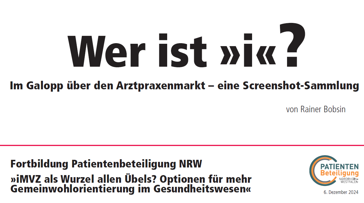 Am 6. Dezember diskutierten rund 40 Engagierte aus Selbsthilfe- und Patientenorganisationen in NRW die Bedeutung von investorengetragenen Medizinischen Versorgungszentren (iMVZ) für die Versorgung. Rainer Bobsin, der seit fast zwanzig Jahren das Marktgeschehen um den Kauf und Verkauf von Krankenhäusern und Arztpraxen beobachtet, gab als Referent einen Einblick in das komplexe Thema. Seit einigen Monaten gibt es in der Politik Bestrebungen, sogenannte Private-Equity-Modelle aus der Versorgung zu verbannen. Hierbei handelt es sich um eine Finanzanlage, bei der durch den Kauf und späteren Verkauf von MVZ Gewinne erzielt werden. Die Beschränkung der derzeit diskutierten politischen Vorhaben auf entsprechende Investor*innen ist laut Rainer Bobsin verfassungsrechtlich jedoch nur schwer umzusetzen. Problematisch sei zudem, dass seitens verschiedener Lobbyorganisationen lediglich Private-Equity-Fondsgesellschaften als profitorientiert kritisiert würden. In unserem Gesundheitssystem könne jedoch jeder Leistungserbringer profitorientiert arbeiten, dies beschränke sich nicht auf einzelne Investorenmodelle. Gemeinwohlorientierung sei im gegenwärtigen Gesundheitswesen möglich, sofern dies von den Versorgenden gewollt sei und freiwillig praktiziert werde.